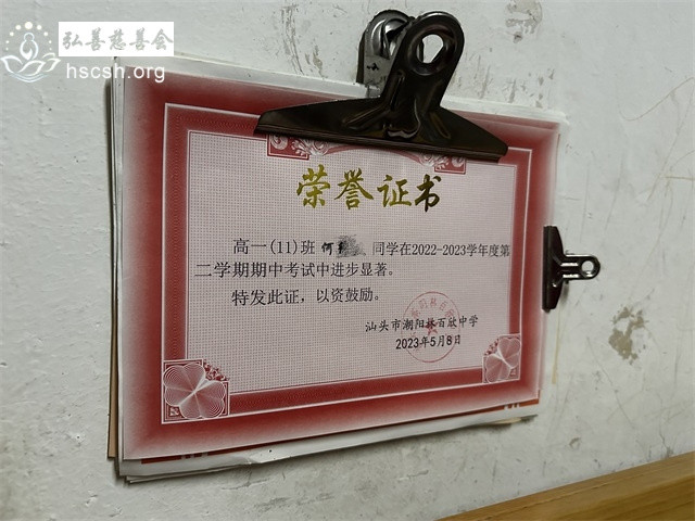 黄某兰、2006年、就读于汕头市金山中学,品学兼优,每学期含住宿1800元,生活费省吃俭用300元。