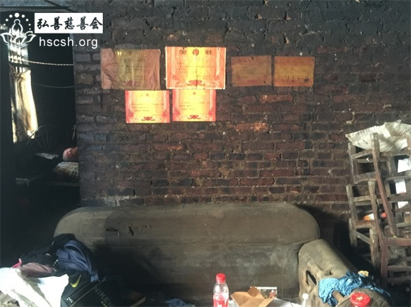 房屋情况:房屋在半山腰上,属危房,不能住,但奶奶还住在 这间屋,兄妹几个人住在上面小叔家,小叔家已搬走。