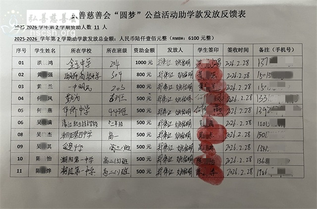 以下为发放助学金的具体情况(应教育局要求,接受资助的孩子需保护隐私,部分信息已打码):